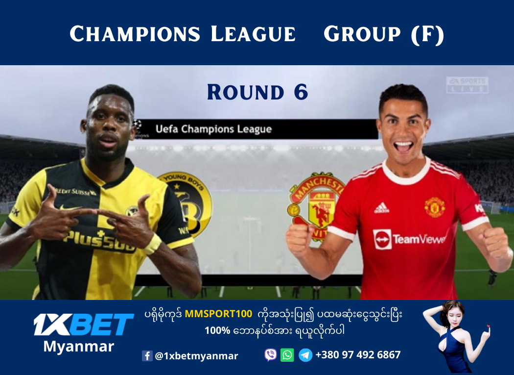 🏆 Champions league Group ( F ) 🏆   Round 6 Manchester United Vs Young Boys   Old Trafford Stadium (9 Dec, 2:30 AM)     ချန်ပီယံလိဂ်ပြိုင်ပွဲအုပ်စု ( F ) ရဲ့ နောက်ဆုံးပွဲစဥ်အဖြစ် မန်ယူအသင်းနဲ့ ယန်းဘွိုင်းအသင်းတို့ဟာ   အိုးထရက်ဖို့ဒ်ကွင်းမှာယှဥ်ပြိုင်ကစားကြမှာဖြစ်ပါတယ်။   မန်ယူအသင်းအနေနဲ့ဒီအုပ်စုမှာ ပထမနေရာရဖို့ သေချာသလောက်ဖြစ်နေတယ်လို့ပြောလို့ရနိုင်နေပြီဖြစ်တဲ့   အခုပွဲစဥ်ကိုအရန်ကစားသမားတချို့ပါဝင်လာဖို့ရှိနေပြီး ခံစစ်က လင်ဒီလော့ဇ်၊ မက်ဂွိုင်းယားအတွဲပဲ   ပါဝင်လာဖို့ရှိနေပေမယ့် ကွင်းလယ်မှာ မာတစ်၊ဘန်ဒီဘီခ်၊ တို့နဲ့တိုက်စစ်မှာ